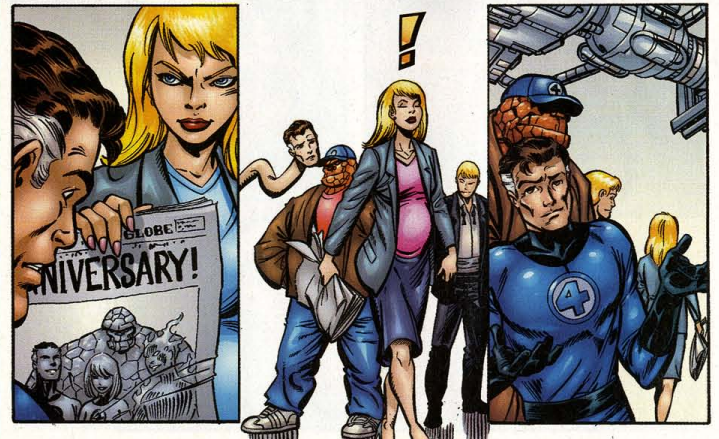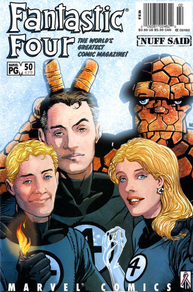 Reading the Fantastic Four comics from the start. It’s issue #50 of volume 3 (legacy #479), so it’s hyped up as an anniversary issue, but it’s also part of a company-wide stunt that ended up not being much of a stunt.