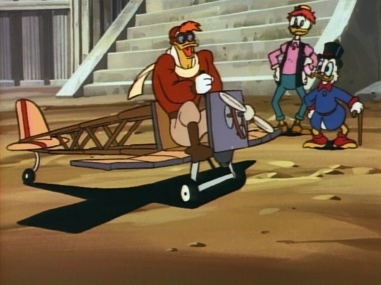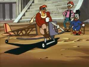 Fasten your seatbelts: Launchpad and his briefcase airplane don’t do much to stop the Beagle Boys, but he doesn’t quit. No matter what the Beagle Boys do, he pursues them.