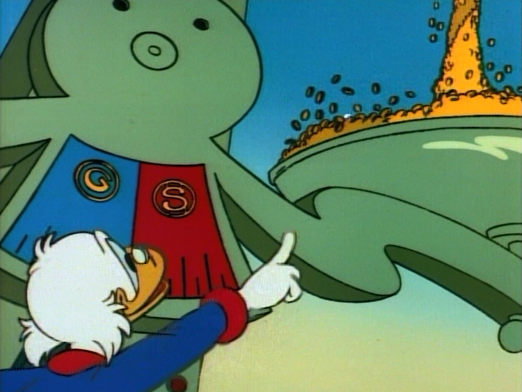 Rewatching DuckTales! Episode 39, “Working for Scales,” is the fourth and final part of the “Cash as Cash Can” multi-parter, so the animators brought out all the stops with a floating city, airplane action, and huge piles of cash.