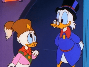 Junior Woodchucks: In the last episode, “Working for Scales,” when Scrooge appears dead, the nephews fear he’s gone forever. In this one, when Scrooge appears to have died, their attitude is just, “We’ve got to find out what happened to him.”