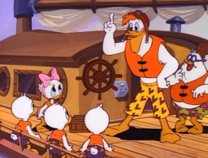That night, the sea monster attacks another ship, and Scrooge and company witness it first-hand. Scrooge disguises himself as a grizzled old sailor to investigate Pete’s operation. His cover is blown when the sea monster attacks both him and Pete. The monster carries Scrooge out to sea. The next morning, the kids investigate while the coast guard docks all boats. The kids convince Launchpad to break the rules, as they all go to sea to try catch the monster with sea biscuits.