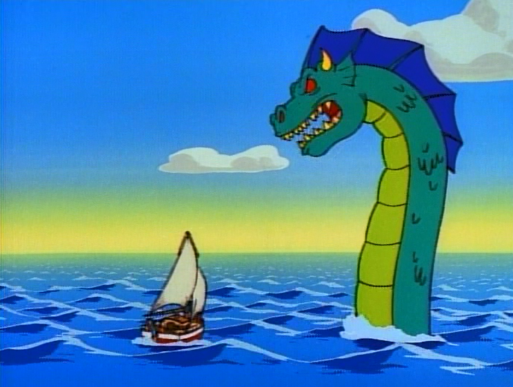Rewatching DuckTales! Watching episodes in order, we can see several tropes being repeated. One of these is giant sea monsters, which have appeared in multiple previous episodes, and here’s another one in episode 40, “Merit-Time Adventure.”