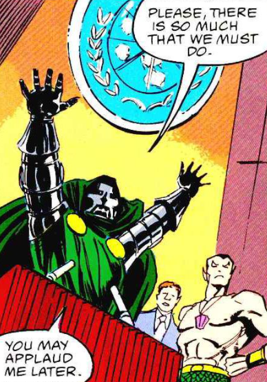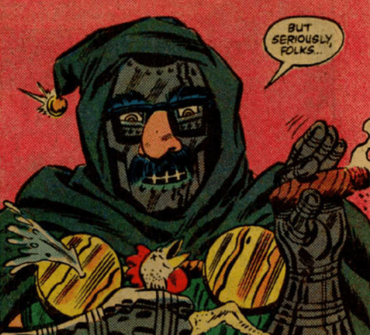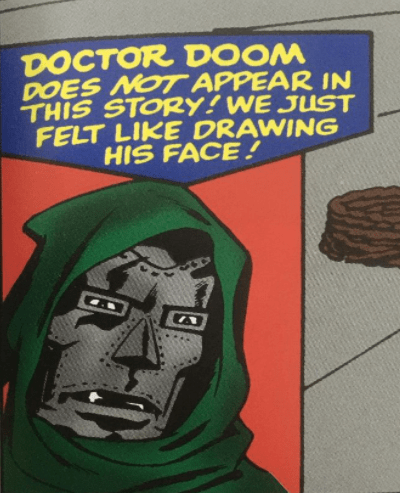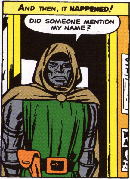 Reading the Fantastic Four comics from the start. But there’s no regular post this week because of [INSERT EXCUSE HERE] so here’s some amusing Dr. Doom panels instead.