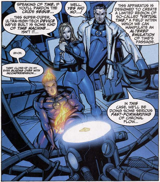 Flame on: At the start of the fight, Johnny cried out, “Flame extra on!” My guess he’s trying to sound cool, and this doesn’t relate to how his powers actually work.