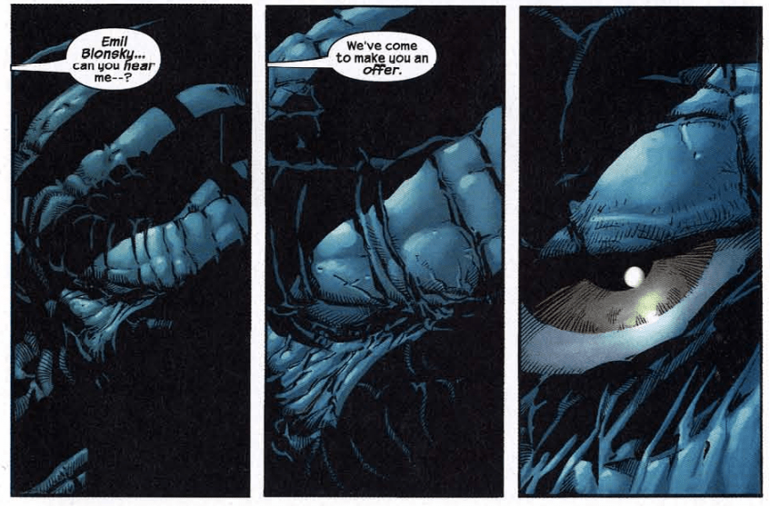 Wait, there’s more: In a three-page preview of Incredible Hulk #50, the Abomination is kept imprisoned in a secret underground bunker. A mysterious woman offers the Abomination freedom if he can defeat the Hulk once and for all.