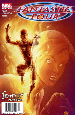 Reed invented a new type of PDA with unlimited computing power, thanks to it being tied to an alternate universe. This inadvertently created Modulus, an electrochemical being that is Reed’s mathematics come to life. To stop Modulus, Reed has entered that alternate dimension to find the equation to… himself. As this issue begins, Johnny and Ben stay behind to fight Modulus. Ben appears to retreat, but it’s all strategy to create more distance between Modulus and Reed.