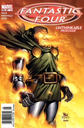 Reading the Fantastic Four comics from the start. Ever since the new team of Mark Waid and Mike Wieringo took over the series, it’s been lighthearted character-based stories. But now, in vol. 3 #67 legacy #496, it’s time to get serious.