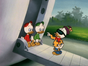 Junior Woodchucks: In addition to his being fed up with being an identical triplet, Dewey is also portrayed as the smart one of three nephews, an expert in coming up with escape plans. The other two also have their own personalities this time. Louie is the heroic leader type, while Louie is the laid-back wisecracker.