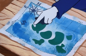 Here’s what happens: After some tense negotiation, Scrooge buys one of Glomgold’s private islands for $20 million. Scrooge pays $10 million cash (!) and Glomgold gives him 24 hours to deliver the second $10 million. Scrooge tells his nephews that although the island might look worthless to the outside, it contains old caveman paintings, and more importantly, a diamond mine. Glomgold listens in on this via a spy camera. He hires the Beagle Boys to set off an explosion, separating the diamonds from the rest of the island.