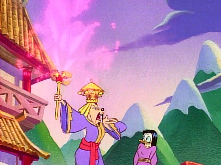 Fowl fouls: Mung-Ho is a villain type we’ve seen several times already in DuckTales. He’s set himself up as dictator of an old-timey society, profiting off the locals’ superstitions. His particular gimmick is using fireworks to make the city folk think he has magic powers.