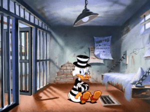 Down in Duckburg: When Scrooge is arrested, he’s not spending the night in a cell at the police station, but inside a gigantic fortress-like prison. Maybe this is because he and Bubba are considered high-profile suspects.