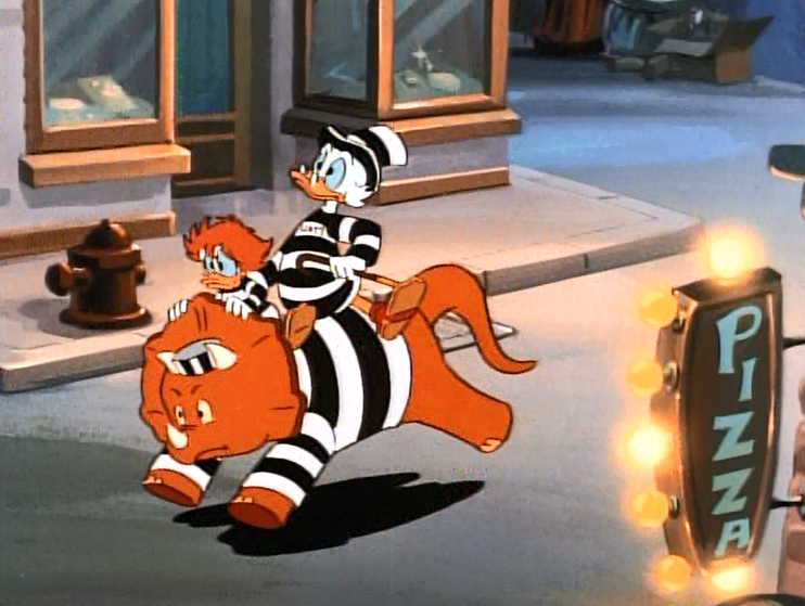 Here’s what happens: In previous episodes, Scrooge time-traveled to prehistoric times as part of a convoluted land deal. Bubba the cave duck hitched a ride back to the present and has moved into the mansion. The Beagle Boys took advantage of Bubba knowing nothing about the modern day to trick the kid into letting them inside Scrooge’s vault.