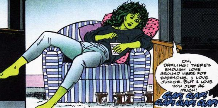 Reading the Fantastic Four comics from the start. Except I was busy this week, so here’s some She-Hulk pics instead:
