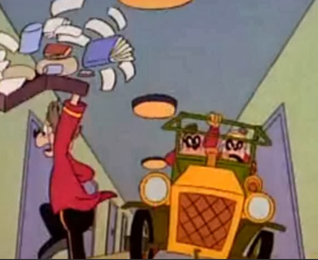 Scrooge next goes to Gyro, asking him to build a robot to guard the money bin. Fenton, meanwhile, goes on a wild chase around town searching for the missing dime, only to run into the Beagle Boys again as they’re about to rob a bank. Later, Gyro reveals he’s built an unstoppable robot to guard the bin. The robot goes out of control, believing everyone to be a potential thief, including Scrooge and Gyro. Scrooge tells Gyro to build another security measure, this time one with a brain.