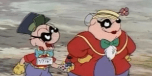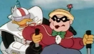 Foul fowls: Not only did Ma Beagle pay off the mayor, but the Beagle Boys show up at the courthouse to all sit on the jury. Both Bebop and Bankjob show up dressed as judges. Also, this is the second and final appearance of Megabyte Beagle. The Disney Wiki doesn’t say that he’s the only Beagle Boy not to have a “B” first initial. Instead, it merely states that it’s “rare” for a Beagle Boy to have another initial.