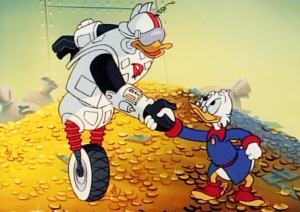 Rewatching DuckTales! Now that we’ve met Gizmoduck, how will he fit in with the show on a regular basis? That’s the question in episode 75, “Money to Burn.” This is the fifth and final part of the “SuperDuckTales” five-parter than originally aired as a prime time made-for-TV movie on ABC.