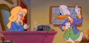 Scrooge is knocked out in the crash, but gets his mojo back when reunited with his money. And Gizmoduck is no longer fired, as both he and Fenton are back on the job as Scrooge’s accountant and top security guard. With newfound confidence, Fenton then stands up to his domineering mother, and even gets a date with the lovely Dandra Dee.