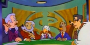 Down in Duckburg: This board of directors Scrooge speaks to have never been seen before or since, and they raise a lot of questions about how he runs his business. They’re terrified of disagreeing with him, even when he doesn’t know what day it is.