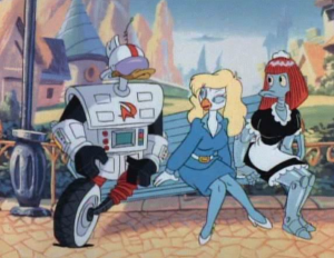 Here’s what happens: Fearing he has no more scientific wonders to discover, Gyro Gearloose decides to invent a way to help Mrs. Beakeley with the housework in Scrooge’s mansion. One scene later, he’s come up with Robotica, a robo-maid who can cook, clean, and babysit – except that she frightens the kids for being so mechanical. Gyro then reprograms Robotica to have emotions, only for her to get overly emotional. Meanwhile, Fenton is still trying to romance the lovely Gandra Dee. When Fenton dons the Gizmoduck shows up to do a job for Scrooge, Robotica falls madly in love with him, and she pursues him relentlessly.