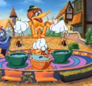 Down in Duckburg: The theme park has a parody of Disneyland’s teacup ride. But in this version, the park guests are inside giant teabags, and they get submerged in hot water.