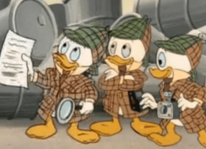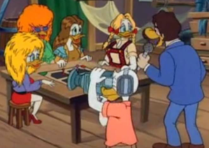 Junior woodchucks: The three boys don Sherlock Holmes outfits when trying to deduce who Gizmoduck really is. This episode loves cosplay.