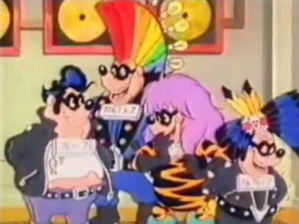 Here’s what happens: The kids are excited about a new contest from an MTV-style rock show. They get excited about all the rock music, much to Scrooge’s annoyance. At the Beagle Boys’ hideout, Ma Beagle and her boys also learn of the contest, and Ma Beagle plots to steal the prize money and become “crime mother of the year.” When they try to steal the money during the live broadcast, they end up on stage and are asked to sing. With Ma’s help, they come up with a song, “The Boogie Beagle Blues.” The audience goes wild, and they’re an overnight singing sensation.