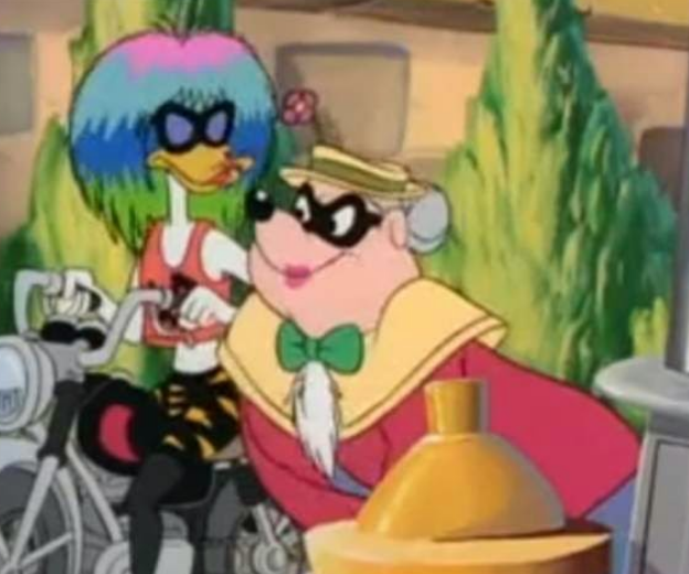 Foul fowls: Instead of a trio, this time we have quartet of Beagle Boys with Big Time, Bouncer, Burger, and Baggy. Big Time sings, Burger is on guitar, Baggy plays piano, and Bouncer is on drums.