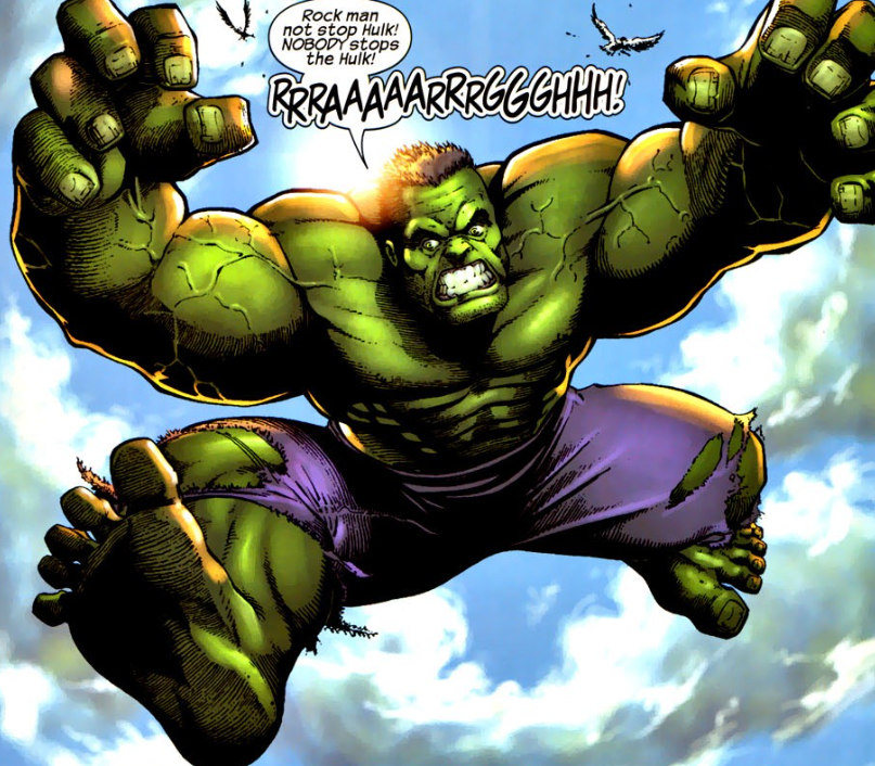 Back in the present, Ben and Charlie sense an Earthquake, and they see a strange object in the sky. Ben tells Charlie to retreat, adding “That’s an order!” With him out of the way, Ben prepares for a fight. The object in the sky is the Hulk, on a rampage and coming down from one of his giant leaps. Ben wraps things up by saying, “Time to go to work.”