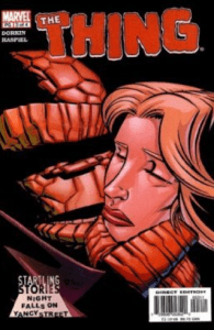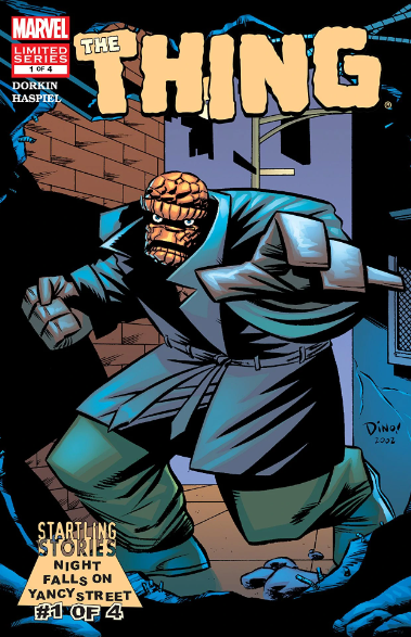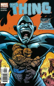 Reading the Fantastic Four comics from the start. It’s our third and final go-around with Marvel’s “Startling Stories” line, and the second one featuring good old Ben Grimm. The Thing: Night Falls on Yancy Street puts our favorite rock monster through the ringer.