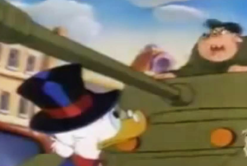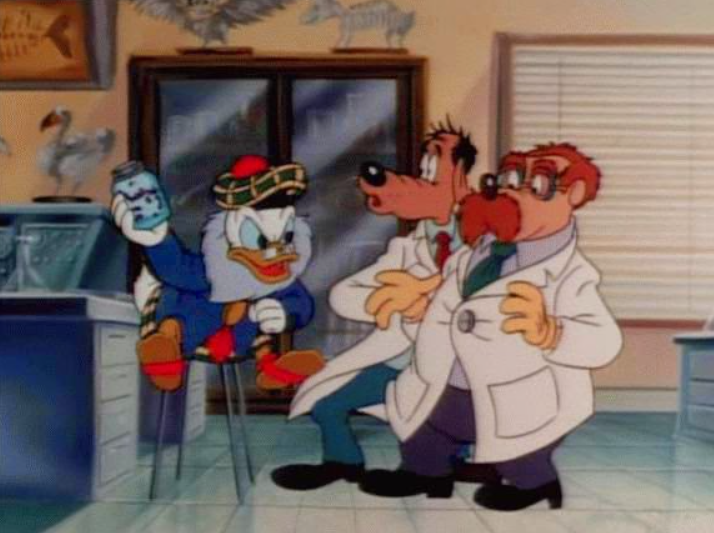 Pro-rata: The Gizmoduck armor is destroyed, and yet Fenton (not Scrooge or Gyro) off-handedly states he’ll just get another one built. And yet, the Disney wiki alleges that this is the last time Fenton is seen wearing the armor (someone else wears it in an upcoming episode, but we’ll get to that). Could the writers have been toying with the idea of writing Gizmoduck off the show, knowing that another duck superhero, Darkwing Duck, was in pre-production?