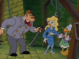 Thoughts on this viewing: Although described as a spy caper, the tone of this episode is more farce. Fenton spins lies to everyone, and then barely keeps his head above water as he struggles to keep his stories straight. It’s another late-period DuckTales episode that’s more concerned with laughs and slapstick than the plot.