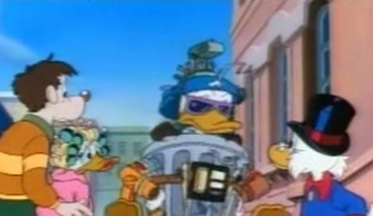 After a chase through the streets of Duckburg, the Beagle Boys next try to steal from a fancy clothing store. Huey again tells Webby to stop blabbing, and the armor goes to him. He stops the Beagle Boys, and the kids realize that they have the new codeword. The Beagle Boys recover while they horse around with the armor, and they snatch the three boys. A fourth Gizmo Kid shows up and defeats the Beagle Boys once and for all, handing them over to the cops. This is Webby, finally getting her chance to be the hero. Fenton’s mother comes clean, admitting this is all her fault. She loses the contest, but wins a “mechanic of the year” award for the garbage suit.