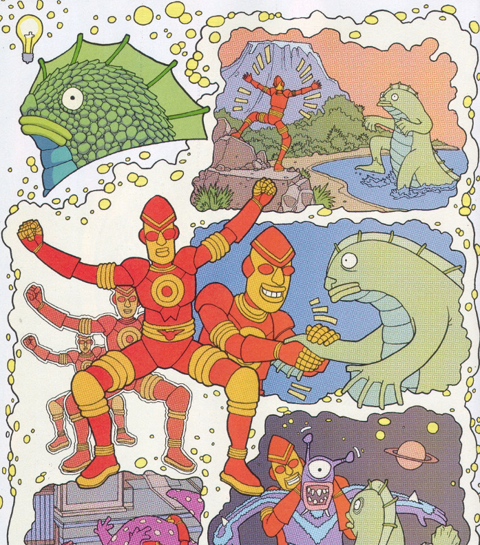 Clobberin’ time: When Ben is able to control the giant robot Otetsukun, that could be a reference to his great piloting skills, or just letting the reader know he’s gained some engineering skills after working with Reed in the lab for so many years.