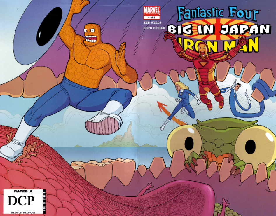 Reading the Fantastic Four comics from the start. Fantastic Four/Iron Man: Big in Japan was a four-issue miniseries attempting to bring some classic kaiju action to the Marvel Universe. Zeb Wells is writing, but clearly artist Seth Fisher is the one behind the steering wheel, because this artwork is something.