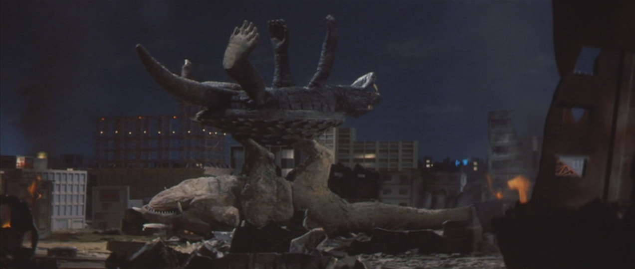 Turtle power: After Gamera is partially paralyzed by Jiger’s darts, there’s an extended scene of him figuring out how to use the environment to his advantage to get back on his feet.