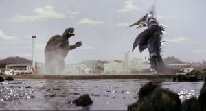 Big baddie: Just what is Zigra? At first, it’s a spaceship, then an intelligent alien aboard the spaceship, but then the ship transforms into gigantic shark-like Zigra. Zigra makes some big moves in his conquest of Earth, causing mostly unseen earthquakes all over the planet. He’s weak out of the water, though, and Gamera is able to bring the pain once he gets Zigra onto land.