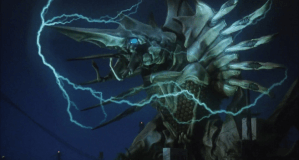 Big baddie: The invading aliens are insects, who lurk in the sewers and who then swarm all over Gamera in an eye-popping set piece. Later, when the Mother Legion shows up, it fights with electric attacks (blue lightning!) for some city-leveling power.