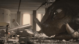 Nice gams: While Gamera in the previous film was redesigned to look all spikey and badass, Toto’s redesign as him as cuter, with rounded features and big expressive eyes.