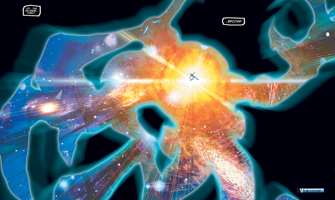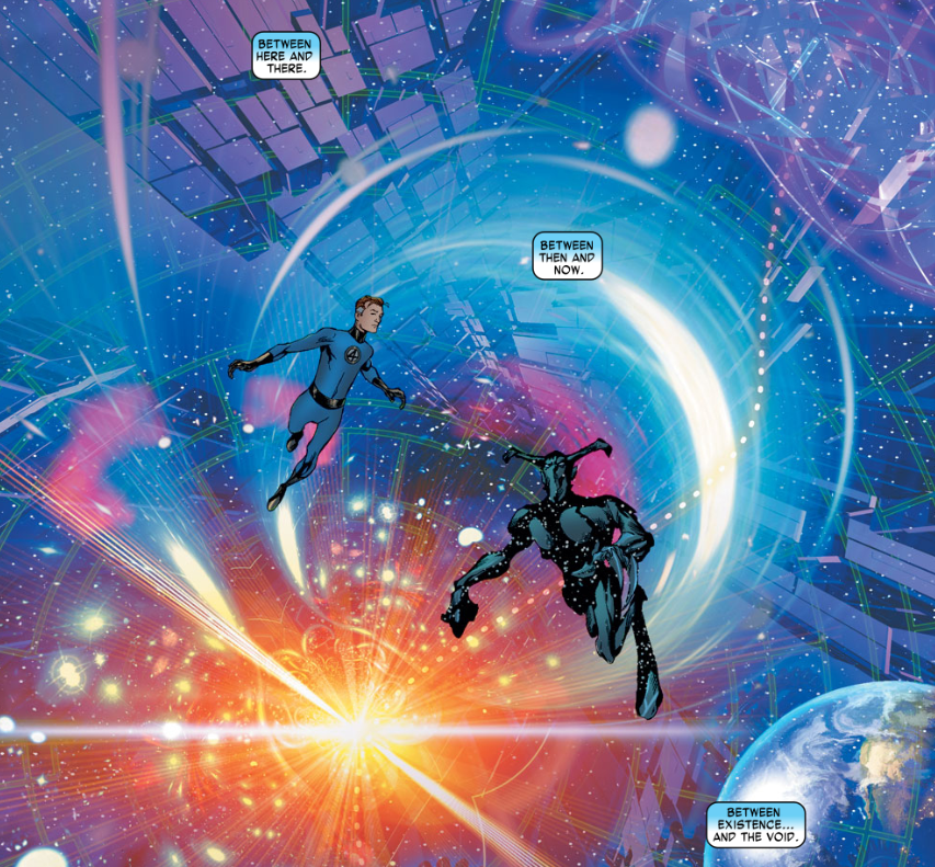 Turn the page, and we see the Entity expanding outward, being the big bang, with Reed still floating at the center of it all.