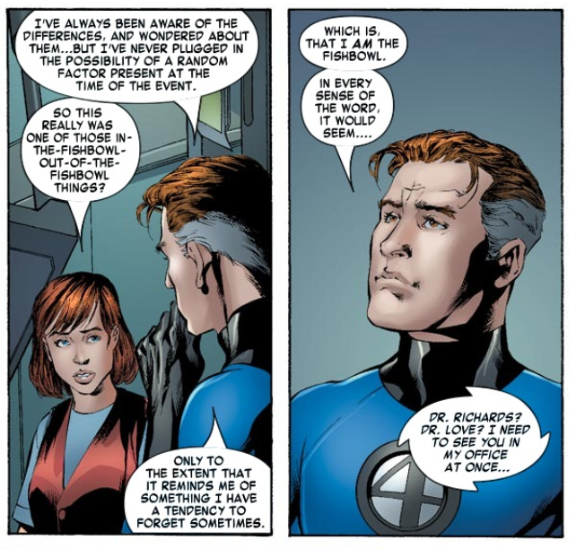 Unstable molecule: Does Reed remember what happened, or doesn’t he? At first, it seems like he does, but the issue doesn’t say. It’s left up to reader’s imagination.
