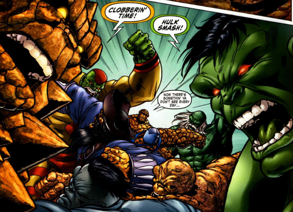 Fantastic or frightful? What can I possibly say about Dan Slott’s writing that hasn’t already been said. Slott enjoys playing around with obscure comic book trivia, which is both his biggest strength and his biggest weakness. It’s fun playing “Where’s Waldo” with all the different Things and Hulks in one scene, but the actual plot takes a back seat to Slott playing in Marvel’s sandbox. The second half of the series is when things (heh) get a little more serious, so we’ll see.