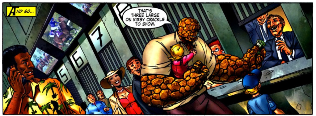 Reading the Fantastic Four comics from the start. When J. Michael Straczynski took over the series, he added a twist by making Ben Grimm a millionaire, with all the fun and trouble that comes with it. Writer Dan Slott and artists Andrea DeVito and Keiron Dwyer took that idea and ran with it in the spinoff 8-issue Thing miniseries.