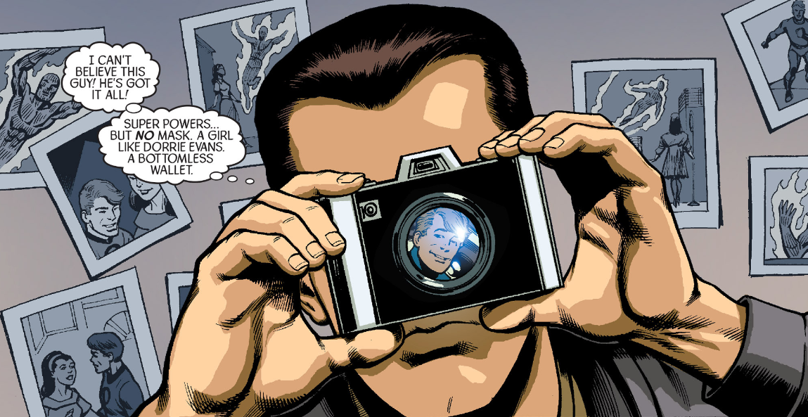 This series explores Johnny and Spider-Man’s friendship (frenemy-ship?) over the years. Issue #1 takes place in the early days. Johnny is instrumental in a fight against the Mole Man, only to see the Daily Bugle publishing photos of Spider-Man instead of him. Peter Parker returns home to his aunt’s house to find Johnny waiting for him. Johnny wants to hire Peter as his personal photographer, making him as famous as Spidey. Peter initially doesn’t want to, but when he discovers Aunt May is hurting financially, he agrees to the job.