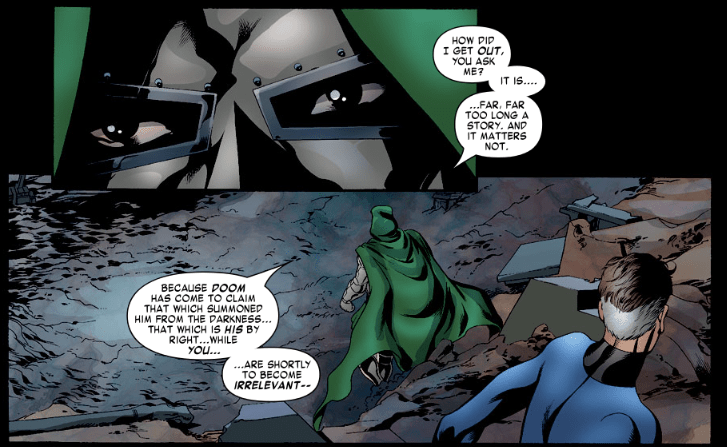 Dr. Doom is back in his classic armor in this issue. What happened to his newfangled magic armor, that was grossly made from the remains of lost love Valeria? He states that it’s damaged, but he does show up in Latveria still wearing it. Therefore, he likely still has it in a closet somewhere.