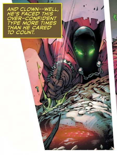 This refers to Gunslinger starting the fight on the previous page by tossing a baby Clown at the Violator, giving himself an opening. Therefore, I don’t believe there’s any “if” as to whether Gunslinger will make a move. My suggestion: