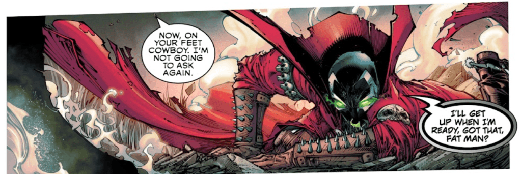 Todd McFarlane is a mega-millionaire with success undreamt of. I’m just some guy. But as I’ve been buying and reading – and enjoying! – Gunslinger Spawn, I’m struck with how the dialogue and captions are something of a mess. Hence, here’s my attempt to copyedit Gunslinger Spawn.