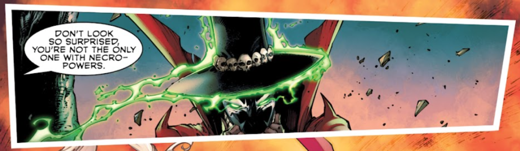 It’s understood among Spawn readers that, despite multiple hellspawns running around, just the name “Spawn” refers to the Al Simmons character. I kept this language plain, because it is expository: