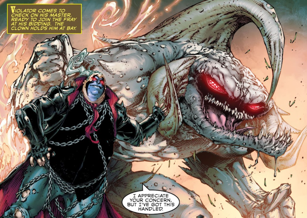 We get this exchange between Clown and Violator. Remember that they’re two distinct characters now.