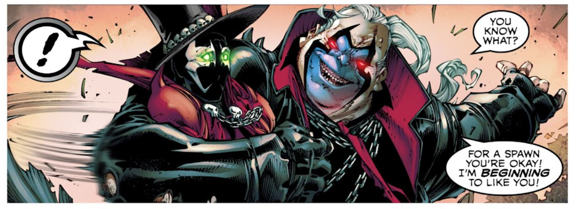 After a fight, the Clown offered Gunslinger a deal. If Gunslinger helps Clown defeat the Al Simmons Spawn, then Clown will send Gunslinger back to the Old West. It seemed like a done deal, but issue #5 continues the conversation.