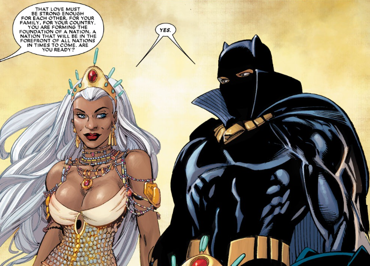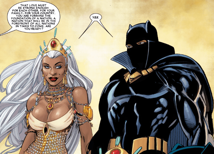 Black Panther had recently married Storm of the X-Men, naming her Queen Ororo of Wakanda. Then, they courted controversy in a series of diplomatic meetings turned into fights with Namor, the Inhumans, and even Dr. Doom – all while the US government watches nervously.